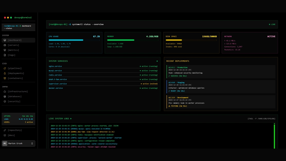 With its distinctive terminal-inspired aesthetic, dark and light themes, and completely backend-agnostic architecture, Terminal offers a stunning, fully responsive admin panel foundation that drops into any tech stack — Laravel, Livewire, Node.js, Rails, Django, or custom APIs.